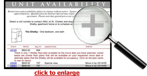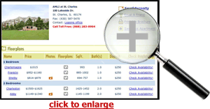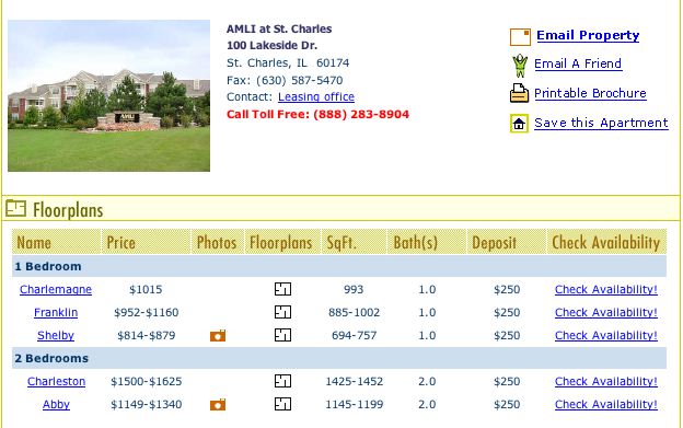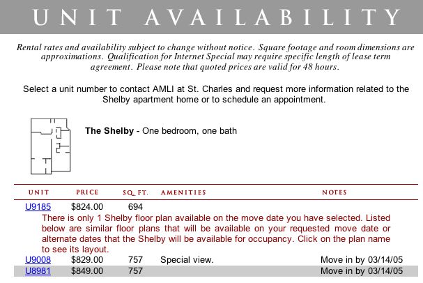 After the user specifies a date, Check Availability obtains from AMLI’s database of apartment information a list of the apartment units that will be available on or around the desired date: